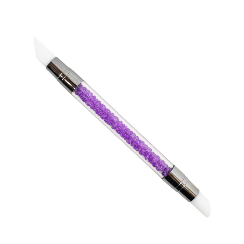 Το Επαγγελματικό Πινέλο Σιλικόνης με “Μώβ Νιφάδες” στη λαβή και λευκή άκρη σιλικόνης είναι το ιδανικό εργαλείο για nail art δημιουργίες που ξεχωρίζουν! Ο διάφανος ακρυλικός κορμός γεμάτος με εντυπωσιακές μωβ νιφάδες συνδυάζεται με την εύκαμπτη λευκή μύτη σιλικόνης, προσφέροντας κομψότητα και λειτουργικότητα. Ιδανικό για ανάγλυφα σχέδια, 3D λεπτομέρειες και εφαρμογή strass, foil ή glitter.