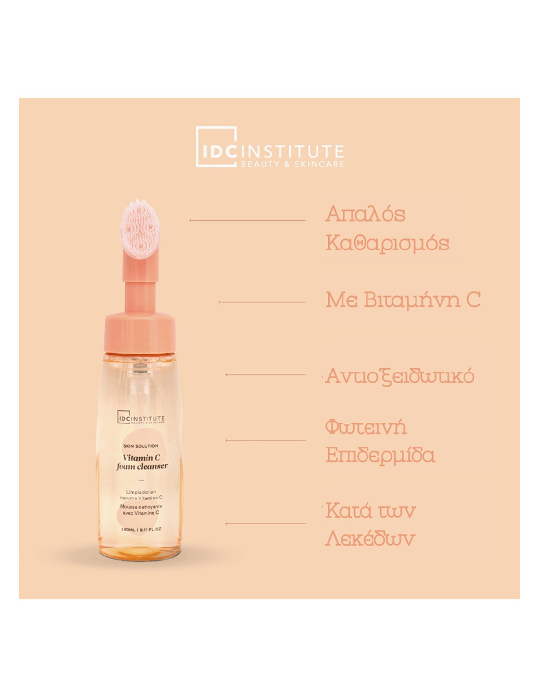 Το αφρώδες τζελ της IDC Institute με ενσωματωμένο βουρτσάκι σιλικόνης, είναι ένα τζελ καθαρισμού προσώπου με Βιταμίνη C που παρέχει αποτελεσματική φροντίδα στο δέρμα. Με Βιταμίνη C, ενισχύει την λάμψη της επιδερμίδας και βοηθάει στην αντιμετώπιση των δερματικών δυσχρωμιών, βελτιώνοντας τον ανομοιόμορφο τόνο της επιδερμίδας. Τονώνει τη θαμπή επιδερμίδα, ενώ συγχρόνως συμβάλλει στη μείωση των σημαδιών του στρες και της κούρασης.