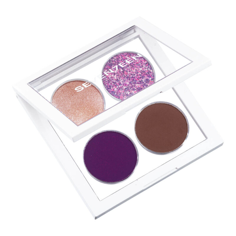Η παλέτα Purple Pop της Seventeen περιέχει 4 σκιές που συνδυάζονται τέλεια μεταξύ τους και αναδεικνύουν κάθε χρώμα ματιών και τόνο επιδερμίδας. Αποτελείται από 2 σκούρες ματ αποχρώσεις σε τόνους του μοβ & του καφέ, μία μπεζ περλέ και μία πολυδιάστατη μεταλλική απόχρωση που περιέχει ροζ, μοβ και σαμπανιζέ, ιδανική για ιδιαίτερες λάμψεις και βραδινές εμφανίσεις.