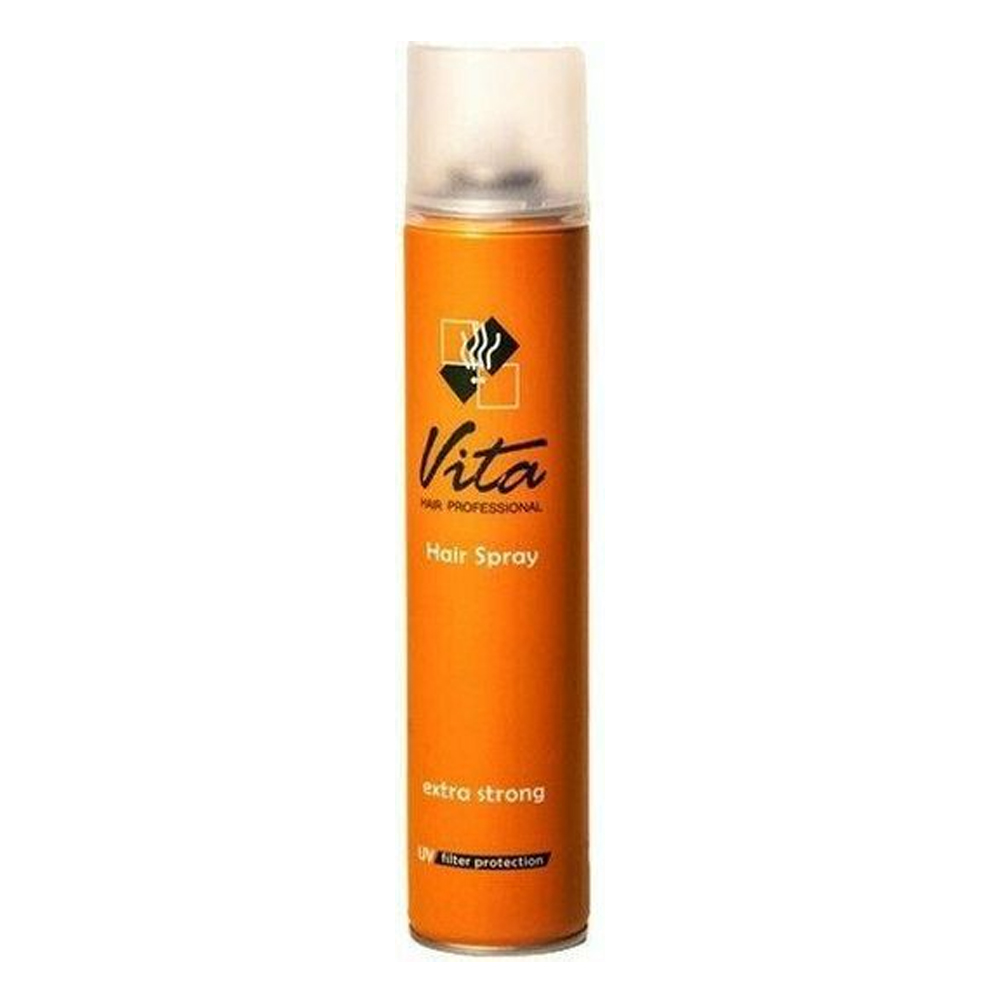 Σπρέι χτενίσματος VITA, για δυνατό κράτημα , ελαστικότητα και μεταξένια λάμψη. Αντέχει στην υγρασία, στεγνώνει γρήγορα, φεύγει με ένα απλό βούρτσισμα, δεν αφήνει κατάλοιπα. Περιέχει αντιηλιακό φίλτρο UV.